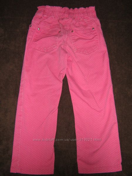 Продам б/у коттоновые брючки на девочку на 3-4 года. Розовые в мелкий горошек, в поясе сзади вшита резинка. Состояние очень хорошее. Замеры по запросу. ЦЕНА 70 ГРН.