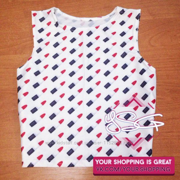 Подробное описание: Топ укороченный с принтом Помада