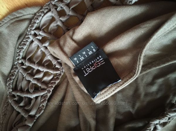 Красивый топ Esprit. Размер указан L , но подойдет на М ( на ОГ -до 94) ПОГ - 90см, в талии -48см. Очень красивый болотный цвет. Причина продажи - стала маловата. Цена 69грн.