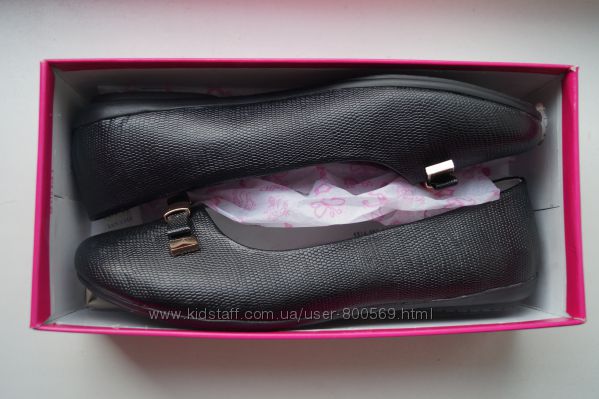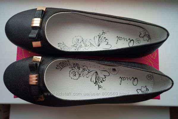 Новые чёрные туфли для девочки, ТМ « Arial » Материал верха: искусственная кожа, внутри – полностью натуральная кожа, кожаная ортопедическая стелька с супинатором. Впереди декорированы милым бантиком с золотистым металлическим декором. Жёсткий задник. Подошва из износоустойчивой термопластичной резины.Замеры: для размера 32: