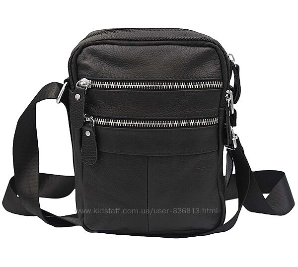 Сумка через плече чоловіча шкіряна чорна, металеві молніїрозмір 22х16х8смДва основних відділення на блискавці. На фасаді відділення на змійці. На звороті відділення на молнії. Регульований ремінь на плече 64-135см.