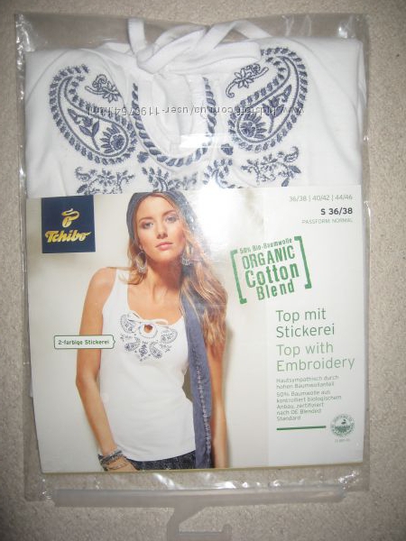 Продам новый в упаковке вышитый топ TCM Tchibo (Германия), р.36/38 евро, укр. 44-46, ткань - трикотаж, состав - 50% органический коттон, 45% коттон, 5% - эластан. Куплен в немецком интернетмагазине Tchibo , причина продажи - не подошел по размеру.