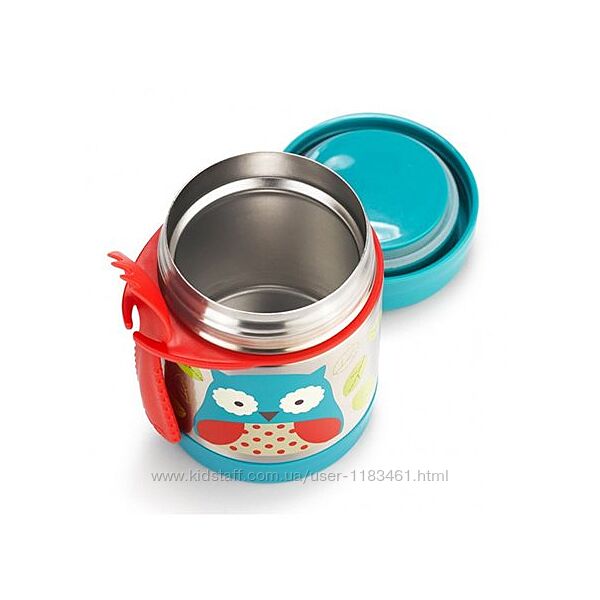 Если подошло время покушать, Вам не нужно спешить домой, чтобы накормить малыша, просто приготовьте еду заранее и поместите в термос для еды Skip hop. Красочный контейнер из нержавеющей стали с изображением забавного зверька охраняет еду теплой или холодной.