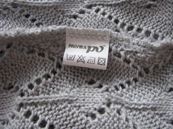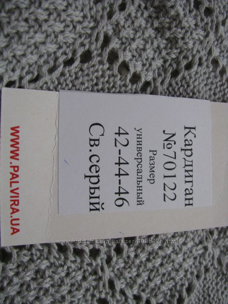 Кардиган світло-сірий "Palvira" (Україна)Кардиган прямого силуету, довжиною вище колін. Виконаний ажурною в´язкою. Спереду для зручності передбачена застібка на 2 ґудзики. Талія підкреслена вставкою-резинкою. Кардиган з укороченим рукавом і V-подібною горловиною.