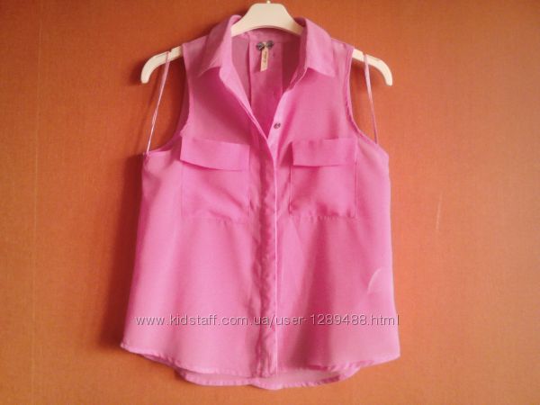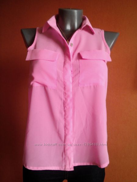 ультрамодная,красивенная шифоновая блуза-рубашка Ribbon,приятного розового цвета,с серебряными металическими пуговицами и сексуальной распоркой на спине,с нагрудными карманамидлина-по спинке-58см.переда-54см