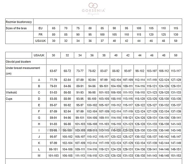 Обхват под грудью | 100, 105, 110, 70 , 75 , 80, 85, 90, 95 |