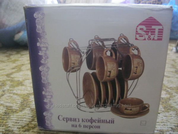 Сервиз кофейный на 6 персон, новый, в фирменной упаковке, марки S&T. В сервизе 13 предметов – 6 чашек, 6 блюдец, металлическая подставка для красивого хранения сервиза. Изготовлен из специально подготовленной глины, обогащенной минералами, которые позволяют достичь чистоты и глубины цвета. В результате специальной технологии термической обработки и последующего обжига достигается возможность использовать посуду марки S&T в посудомоечных машинах и микроволновых печах. Красивая подарочная упаковка, необычный дизайн и удобство в использовании делают этот сервиз прекрасным подарком к любому торжеству. Отвечает всем обязательным требованиям ГОСТ.Возможна пересылка в другие города наложенным платежом, Укрпочтой или Новой Почтой за счет покупателя.