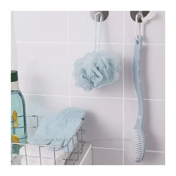 * в руках её держать очень удобно, потому как имеется специальный прогиб под руку. Да и длина ручки вполне устраивает: я умудряюсь вымыть всю спину.