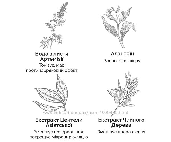 - екстракт центели азіатської знімає подразнення, зменшує почервоніння;