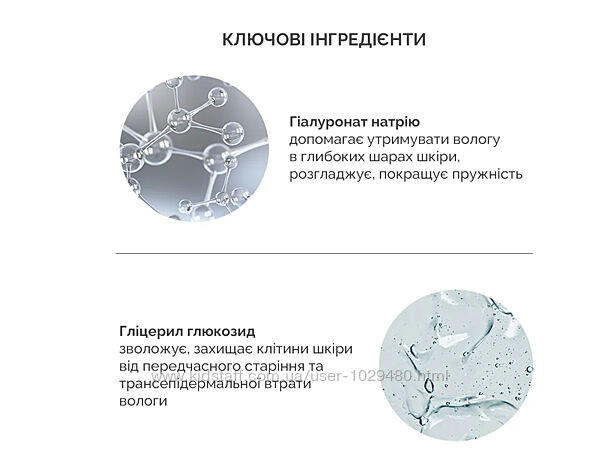 - гіалуронат натрію допомагає утримувати вологу у глибоких шарах шкіри, розгладжує дрібні зморшки;