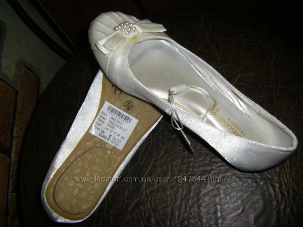 ф. 5-6 БЕЛЫЕ качественные туфельки с блестящим серебристым носочком.