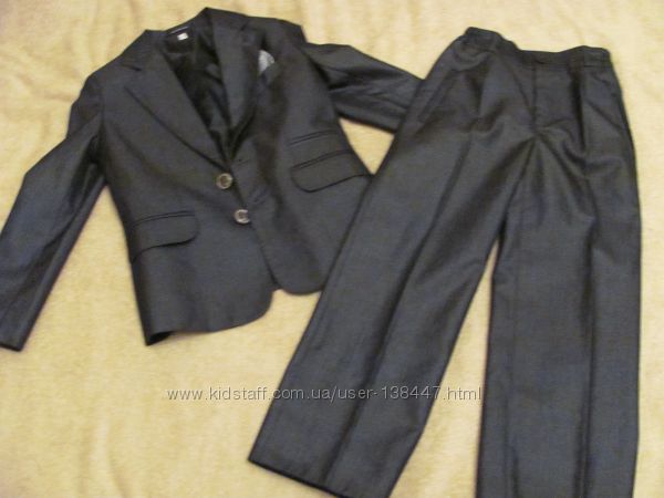 Продам классический костюм Bozer на 6-7 лет. Цвет темно серый, пиджак размер 30, брюки р 32.В данный момент штаны подшиты на рост 117см, можно отпустить.состояние нового.Покупали в школу, не подошел по цвету формы.Качество очень достойное.