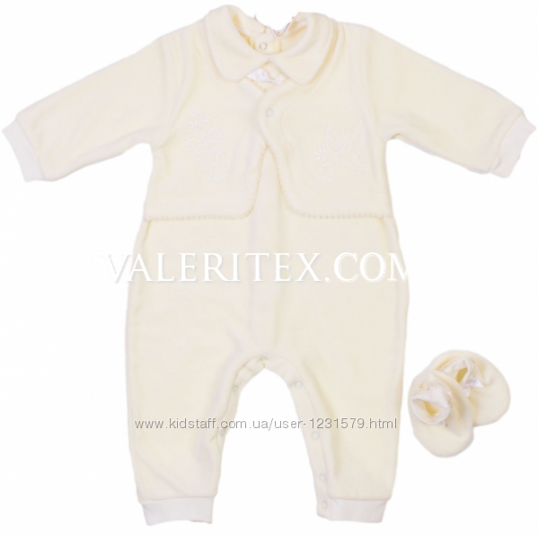 Фото 6 Нарядный велюровый комплект (кофточка, штанишки, пинетки)