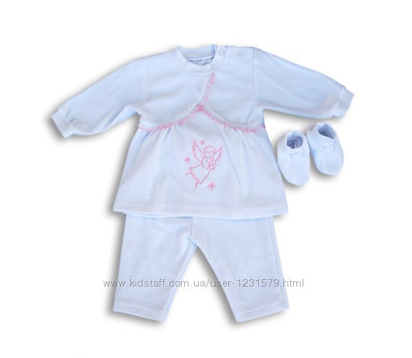 Фото 5 Нарядный велюровый комплект входят: кофточка, брючки, пинетки.