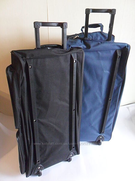 Сумки дорожные на колесах, с выдвижной ручкой, больших размеров "Kipling". Большие, очень большие и Гигант. Внешним объемом 97 литров ( 1350 грн. ), 130 литров ( 1550 грн. ) и 185 литров ( 1750 грн., эта уже на трех крупных колесах ) Высокой надежности, - для поездок на самолетах, поездах, автобусах. Для мужчин. Цвета черный и синий.- Плотная ткань с пропиткой.