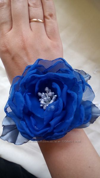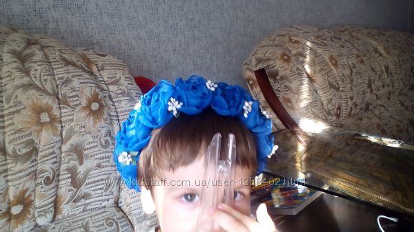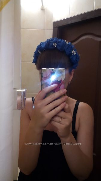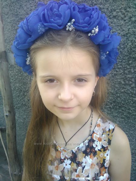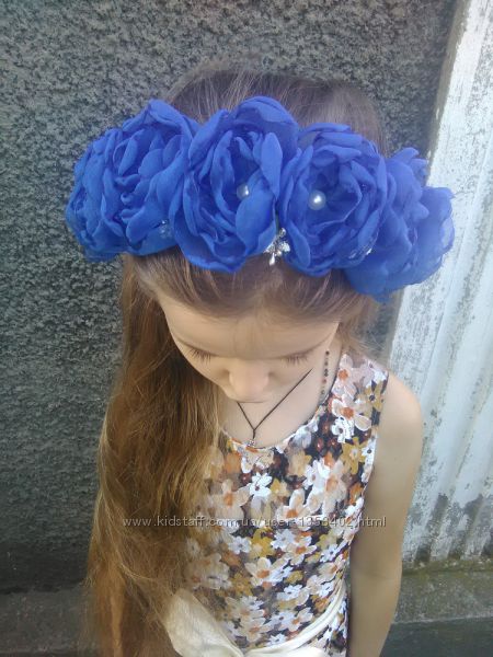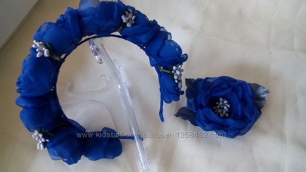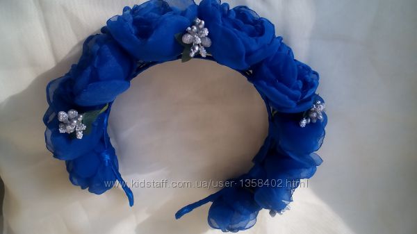 Авторской обруч ручной работы из шифона насыщеного синего цвета (электрик). Все лепесточки выполнены вручную. Будет прекрасным украшение для вас и вашего ребенка, размер универсальный. Сделает ваш образ неповторимым. Оригинальный подарок к празднику.К веночеку можно изготовить цветок на руку или брошь в том же цвете. Возможно изготовление в другом цвете, срок изготовления 1-2 дня.