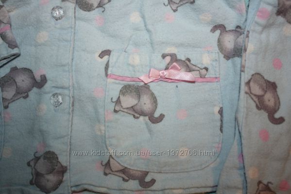 Красивая светло-голубая в очаровательные слоники Пижама байковая ф.Primark на девочку 3-4года,р-104 в хорошем состоянии.длина-40,плечи-25,рукав от плеча-30,ширина от подмышек-32