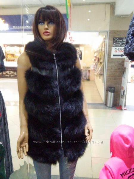 Молодежная ,женская жилетка от производителя пошита из меха песца с кожаными вставками. Очень красиво садится по фигуре.Летняя цена!