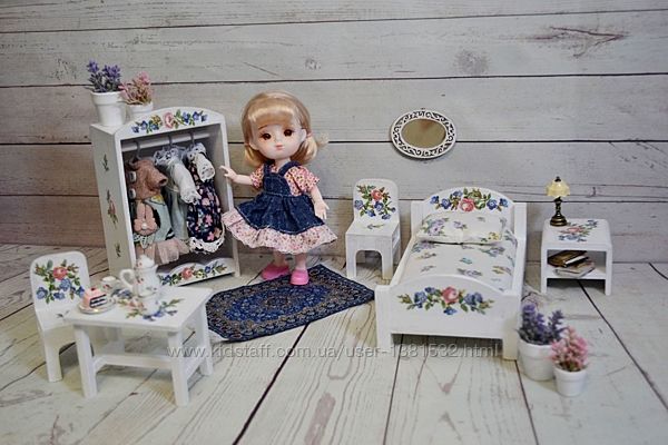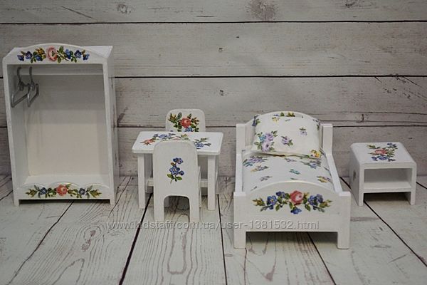 Меблі для найменших ляльок 8-14см (Лол,Келли,Челсии др.) Ручная работа Матеріал - дерево, акрилові фарби та лак Набір 5 предметів - ліжечко,шафка,столик, 2 стільчика - 460грн Колір за бажанням