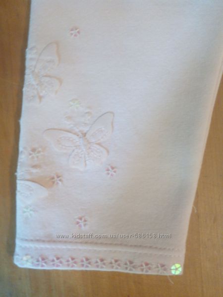 Продам наши леинсы ,куплены в Англии, Next. 1-2 года .Новые без бирки,нежно розового цвета,фото не передаёт реальный цвет,с пайетками и бабочками 3 D.Замеры: шаговый шов-28 см. пояс-24 см., длина 44,5 см.