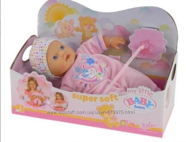 Пупс с соской My Little Baby Born Zapf Creation 819753 Кукла с чрезвычайно мягким животиком с небольшим размером и весом, ее "маленькие мамы" смогут легко взять с собой куклу куда захочет. Красивое лицо и голубые глаза очаровывают всех!