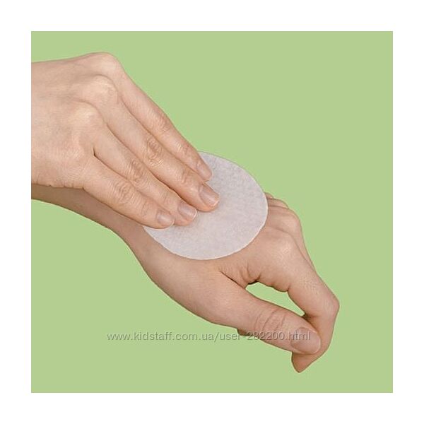 Дістаньте один диск та протріть ним обличчя, уникаючи зони навколо очей. Рельєфна сторона посилено відлущує ороговілі клітини, а гладка — очищує та зволожує шкіру.