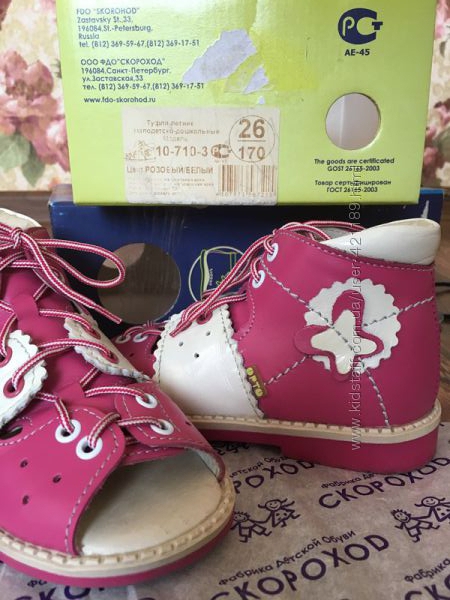 Босоножки о рто, р-р 2 6 , от края до края 1 8 см (без учёта каёмки подошвы - 17,5 см) , рекомендовано на стопу 17 см. Высокое качество, соответствие всем требованиям врачей ортопедов (имеют жесткую пятку, хорошую боковую поддержку, стельки со сводоподдерживающим эффектом, легко сгибаемую подошву, натуральная кожа).Они отлично сидят на ноге, хорошо фиксируются, лёгкие, просто ухаживать.