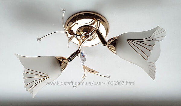 Люстра с поворотными плафонами на 2 лампы --- возможен монтаж на стену как бра Материал корпуса - металл Материал плафона - стекло Цвет корпуса - золото Тип патрона - E27 Количество ламп - 2 --- Пересылаю компаниями Новая почта, Укрпочта, Мист