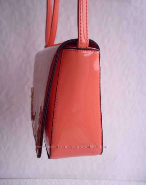 Стильная сумочка модного дизайна из лакированной иск. кожи Fantacy Mood. Декорирована металлической фурнитурой в виде узора на клапане. В наличии 2 цвета: розовый коралл и карамельный (коричневый).Размеры: Ширина — 23 см, высота — 16 см, дно — 7 см