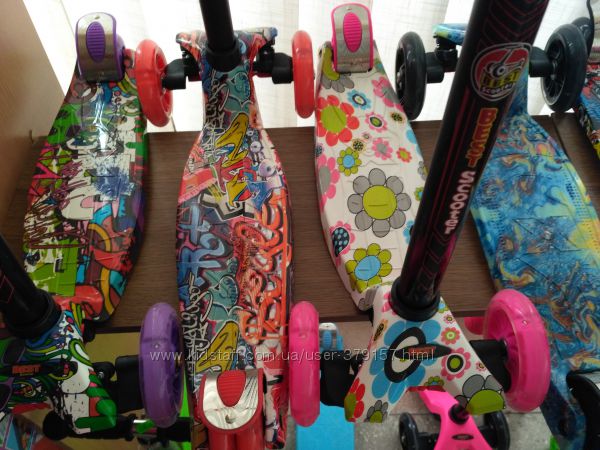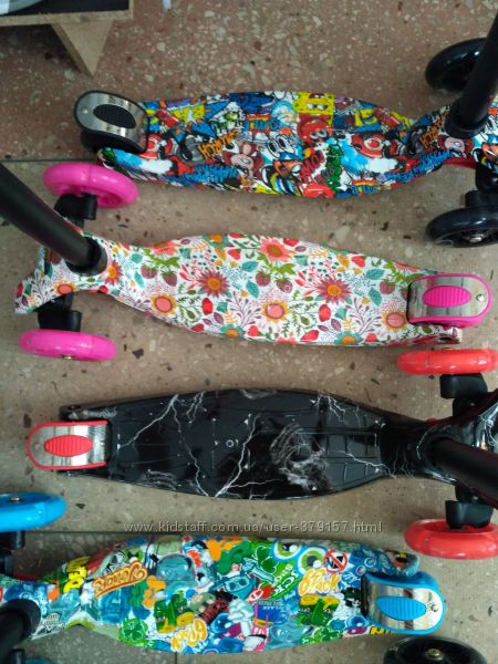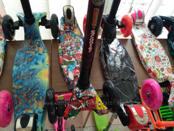 Самокат станет замечательным приобретением для маленького непоседы. С первого взгляда самокат привлечёт внимание малыша своим стильным дизайном и светящимися колесами.За счет трехколесной конструкции и сдвоенному заднему колесу самокат достаточно безопасен и устойчив. Данная функция предназначена для предотвращения падения во время катания. Пластмассовая дека самоката выполнена из прочного материала и крепится на раму.