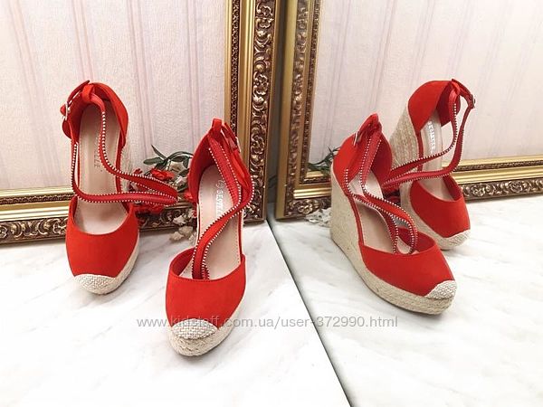 Код 1349, 1350 ,1351"Босоножки с закрытым носочкомЦвет - серый, красный, голубой танкетка от 2,5 до 11см, каблук 0,5смПольша.