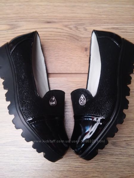 Скидка на последний 34р!Были 330грМодные туфельки на тракторной , облегченной подошве.Верх комбинировпнный искусственный лак+замша с напылением, стелечка кожаная, есть супинатор!