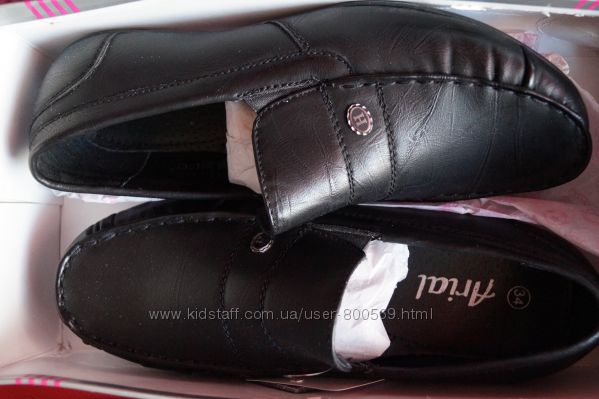 Новые черные мокасины,туфли для мальчика . Размер 34. Материал верха: искусственная кожа. Внутри – полностью натуральная кожа. Уплотненный задник. Материал подошвы - износоустойчивая термопластичная резина. ТМ «Ариал»Размер 34: Длина стельки - 22,5 см. ;