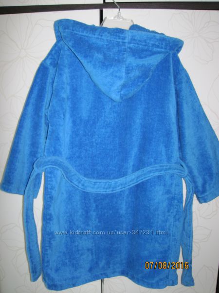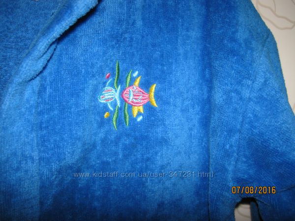Шикарный махровый халатик, размер по бирке 3-4 года, но можно и большеСостояние отличное! после одного ребенка, нами использовался для бассейна в садике, ни по дому ни по пляжу ни носился, поэтому ни пятен ни дыр ни потертостей нет. Хорошая качественная махра, воду впитывает отлично и греет тоже отлично! Цвет яркий, насыщено синий, украшен небольшой вышивкой, подойдет как мальчику так и девочке!