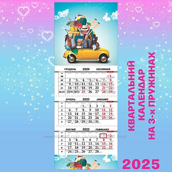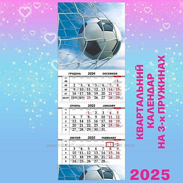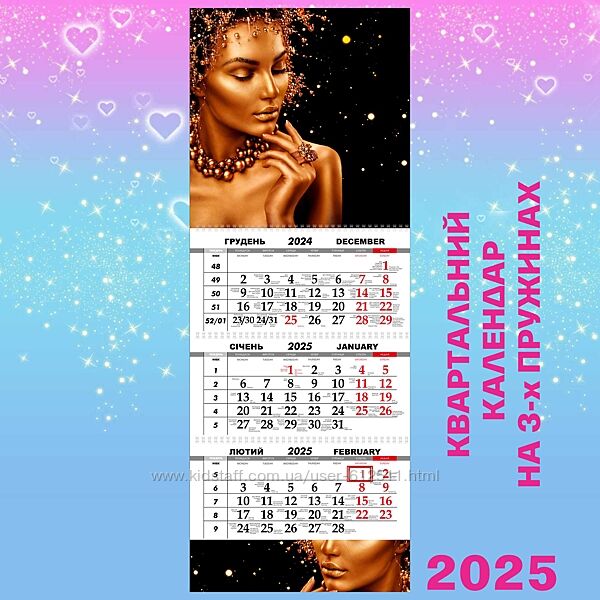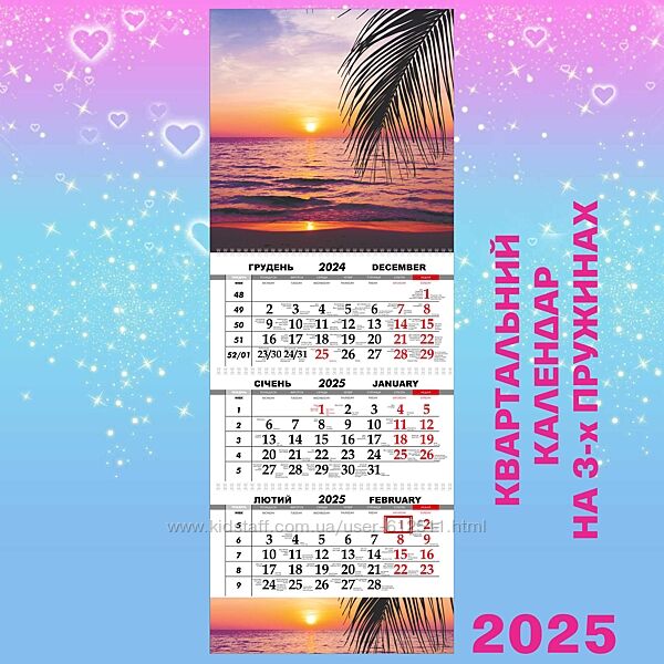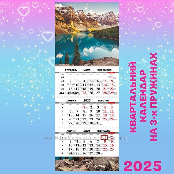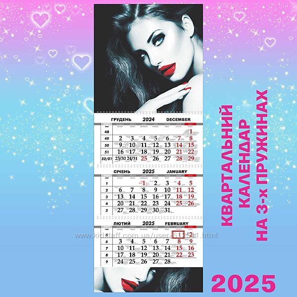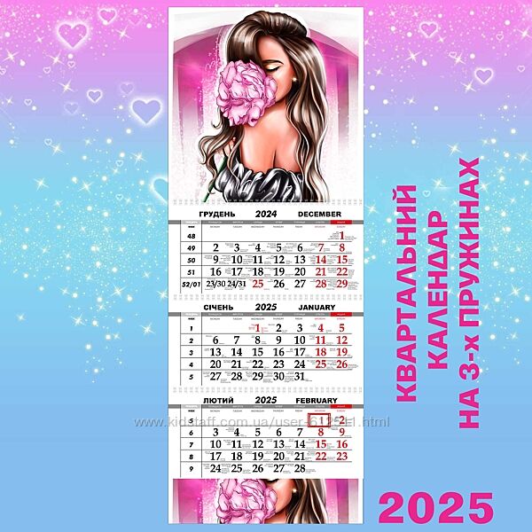 Подробное описание: квартальный календарь на 2025 год на трех пружинах