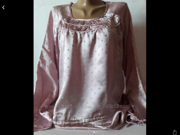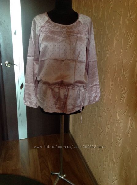 Фирменная блуза , почти новая, одевалась дважды, не стиралась, не чистилась. Состояние идеальное! Куплена в Киеве в стоковом магазине. Фирма производитель TCM Chibo 100% шелк. Очень лёгкий и нежный. Размер написан на этикетке, но лучше смотреть замеры. На реальных фото блуза не отутюжена. Цвет пепельная роза. Роскошный и дорогой. Последнее фото. Длина прямо по спинке 70, можно сделать напуск шнурочком, будет нужная длина. Длина рукава от горловины 71 ( заканчивается резиночкой, можно регулировать), рукав от подмышки 52 (реглан.) От подмышки до подмышки 55. По линии бедер (по линии пояска ) 55.