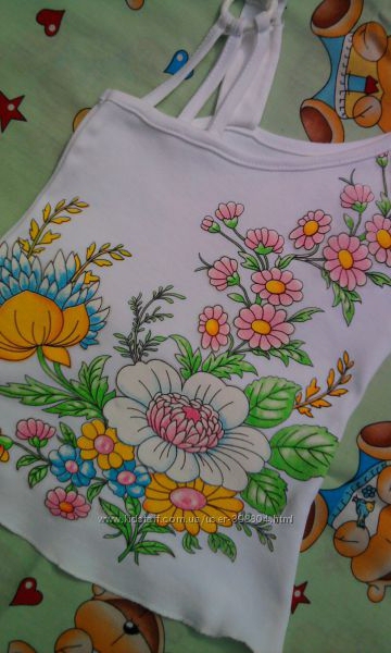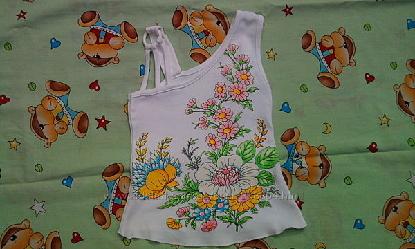Продам нашу тунічку оранжеву дуже гарного яскравого кольору. Будь-які дирки та п"ятна відсутні. Заміри : Дліна 42,5 см.,ширина під ручками 27 см., але там під грудьми є ризиночка, яка гарно т"ягнеться. Спочатку носили як платтячко, а коли підросли, то під лосінки стала нам тунічкою )))) - 35 грнмайочка біленька у дуже гарні квітки, виглядає чудово. Будь-які недоліки відсутні, носили акуратно. Заміри: дліна - 37 см., ширина - 24 см., - 40 грн