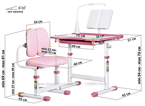 Комплект Evo-kids BD-23 з лампою рожевий (парта + стілець + лампа + підставка) -