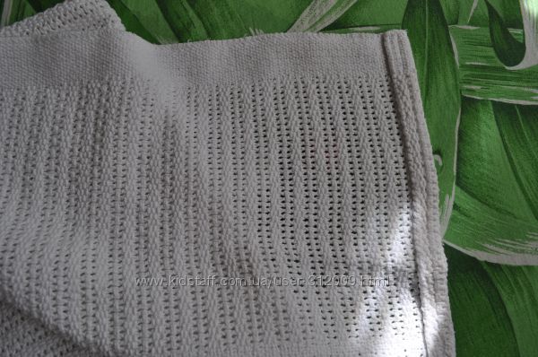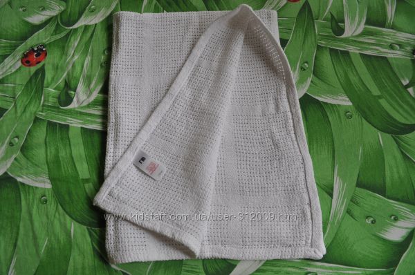 Фото 1-3: Легкий пледик Mothercare. 100% бавовна. Колір - білий. Ажурная вязка. Розмір: 70см х 93 см