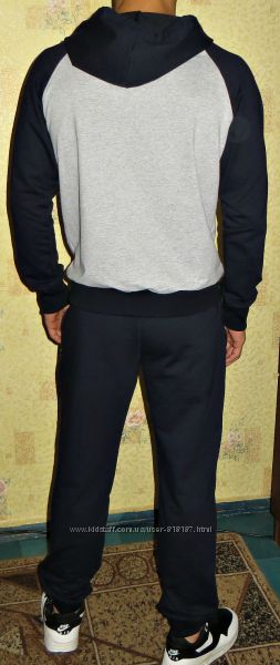 Трикотажный костюм, комбинированный,размеры полномерные. Кофта с капюшоном, карманы накладные " кенгуру". Штаны на манжете. Карманы штанов косые, без молнии. Рисунок нанесен качественной резиновой пропиткой которая не лопается и не слазит выдерживая многократность стирок.