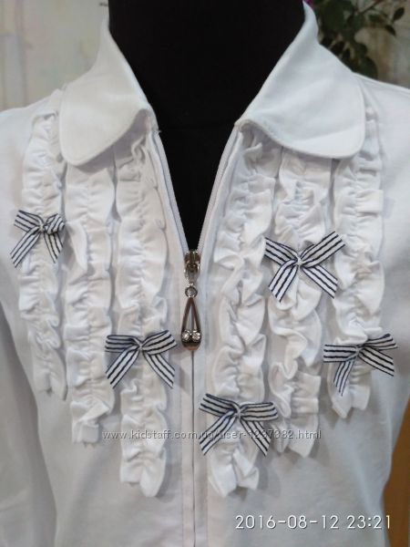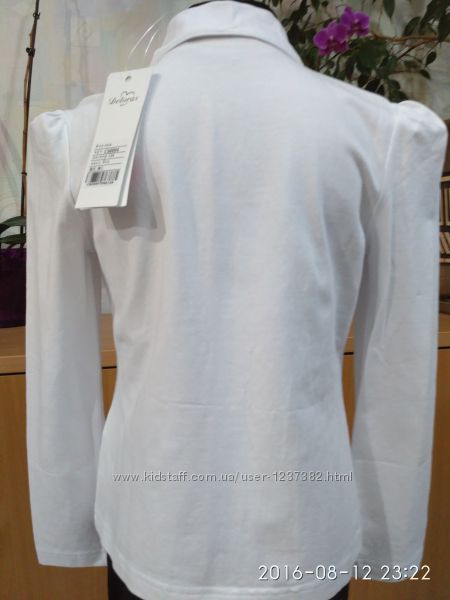 Красивые и качественные трикотажные белые блузки на молнии для девочек фирмы DELORAS.Состав : 95 % котон + 5 % эластан.