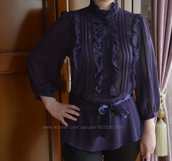 Блузка шифоновая, красивого цвета, фирмы KOR@KOR (Италия), идёт на р.S - M.С шелковым пояском, можно и другой пояс подобрать. Состояние новое.