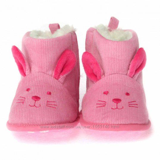 Отличные пинетки для девочки розового цвета в виде зайчика. Утепленная флисовая подкладкаФиксируются при помощи липучек