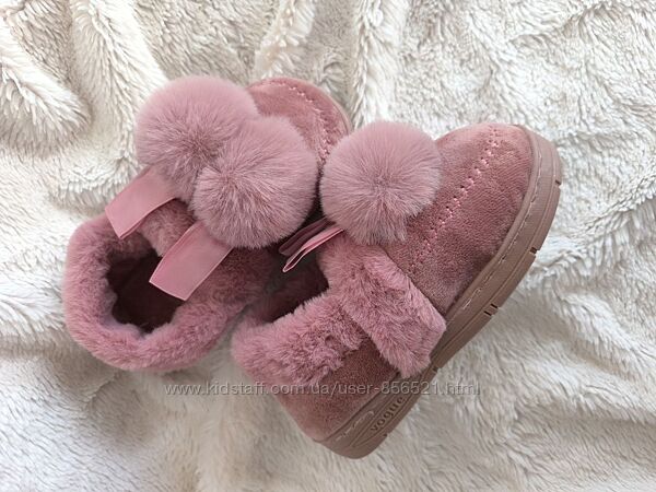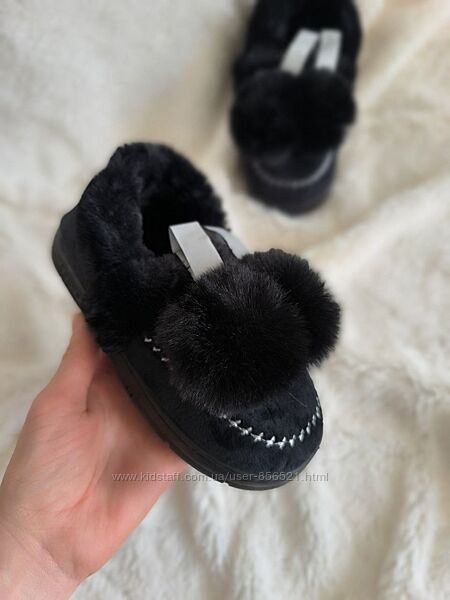 Акция Детские мокасины теплые с пумпонамиушки слипоны автоледи лоферы