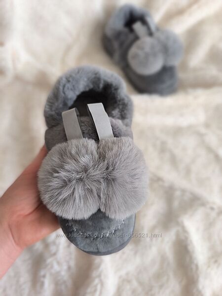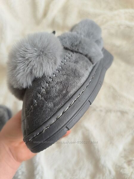 Детские тапочки Autolady велюровые с ушками и меховыми бумбонамиОтличный вариант для прогулок в период осенней погоды и переход на зимнюю,