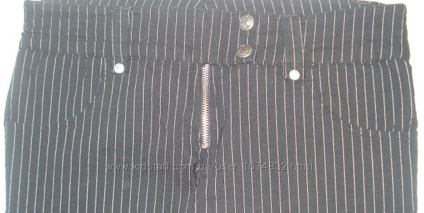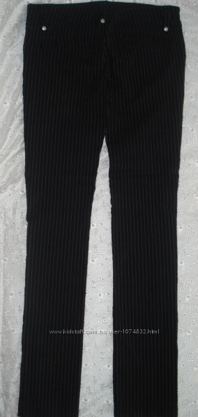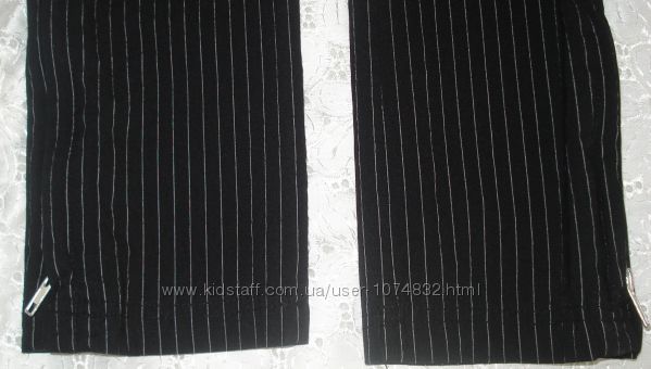 Стильные женские полосатые брюки, размер 38 (европейский, наш 44). Ткань - стрейчевая, нормальной плотности (хлопок + полиэстер). Ширина низа брюк регулируется молниями.Полуобхват пояса - 38 см