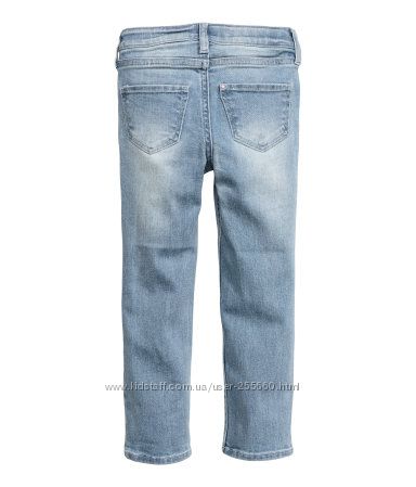 Шикарные фирменные джинсики для девочки от известного бренда H&M (Швеция).Джинс средней плотности, мягкий, слегка стрейчевый. Состав: 95% хлопок, 3%-полиестер, 2%-эластан. Цвет-голубой,разбеленный джинс. Спереди еффектная аппликация в виде котика с бантиком. Внутренние карманы спереди, накладные сзади. Модель-SLIM FIT ("стройные ножки"-слегка зауженные штанины). Есть утяжка в талии.