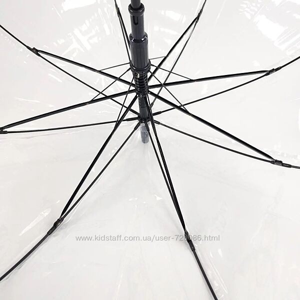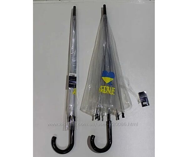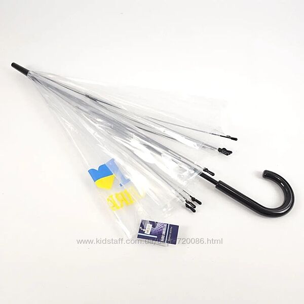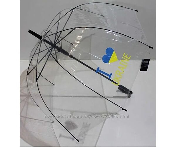 Девушки, прекрасная половина человечества! ДЛЯ ВАС!Зонт выполнен в виде трости, купол прозрачный, принт I love Ukraine, полуавтомат. Спицы- 8 штук. Ручка пластиковая черная.