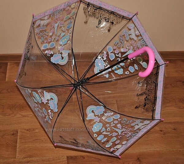 Девушки, прекрасная половина человечества! ДЛЯ ВАС!Зонт выполнен в виде трости, купол из поливинила- прозрачный с принтом , полуавтомат, антиветер (хорошо выражена купольная форма). Спицы - 8шт, ручка пластиковая розового цвета.