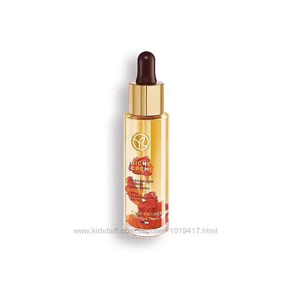 Восстанавливающая Масляная Сыворотка с Лепестками Роз - RICHE Питательная сила масла 1000 роз для интенсивного восстановления кожи. Новая шелковистая масляная сыворотка мгновенно возращает коже комфорт и упругость. Формула содержит 100% ингредиентов растительного происхождения: 30 Ценных Масел & Масло 1000 Роз. Исследователи лаборатории Yves Rocher изобрели естественный процесс экстракции масла из воска, содержащегося на поверхности лепестков дамасской розы. Тщательно выбранные 30 ценных масел: масло камелии, шиповника, органическое аргановое масло и другие - в сочетании гарантируют комфорт и интенсивное питание кожи из-за содержания незаменимых жирных кислот. Сыворотка постепенно восстанавливает и интенсивно питает кожу, разглаживает морщины и придает сияние. Тип кожи : Для сухой и склонной к сухости. Текстура : Шелковистое масло. Действие : Питание. Во флакон масляной сыворотки добавлены нежные лепестки роз: они являются той частью растения, где наиболее концентрируется защитный воск, интенсивно питающий кожу. Подтвержденная эффективность: Морщины стали менее выразительными, кожа интенсивно напитана и более упругая. Рекомендации по применению: наносить утром и вечером на предварительно очищенную кожу лица перед использованием основного ухода. Формула тестирована под дерматологическим контролем. Флакон: 30 мл
